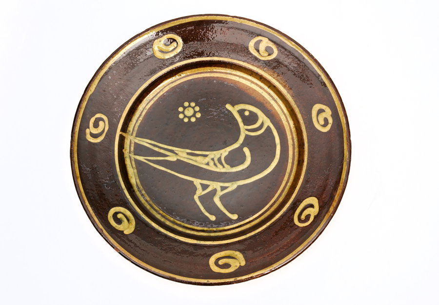The Winchcombe Museum Collection is of pottery made at the nearby Winchcombe Pottery or elsewhere by potters who were trained or worked at Winchcombe. The largest group of around 40 items was given in 2017 by James and Diane Perry, who lived in Winchcombe for a number of years. They began buying pieces direct from the pottery, moving on to seek out slipware examples from the 1940s and 50s. When they retired, and moved back to America, James decided to ‘use the Internet to collect pieces by as many of the potters who worked or trained at the pottery from 1930 on’ as was possible. The collection includes examples by Winchcombe’s key potters Ray Finch (and his family Joe, Mike and Trudi), Sid and Charlie Tustin, Don Jones and Eddie Hopkins. There are also pots made at the pottery by Pat Groom, Chris Harries, Nina Davies, Jim Webster and Alex McErlain, who all went on to work elsewhere including overseas. Represented by work from their own potteries are a number of those that trained or worked at the Winchcombe pottery: Ivan Martin, Anne James, Jim Malone, Ursula Mommens, John Solly, Toff Milway, Peter Dick, Colin Pearson, John Leach, Dan Finnegan, who went on to work in Virginia, and Stephen Pearce, who worked in Ireland. In addition the museum has a few other Winchcombe Pottery examples acquired over the years, which together with the Perry collection, provide a good small collection of the slip-decorated earthenware pottery made at Winchcombe from 1926 until 1964, and also examples of stoneware made from 1952 onwards.