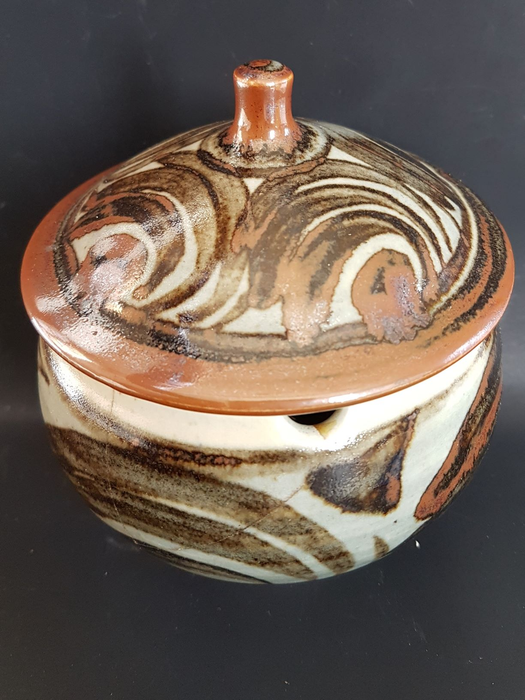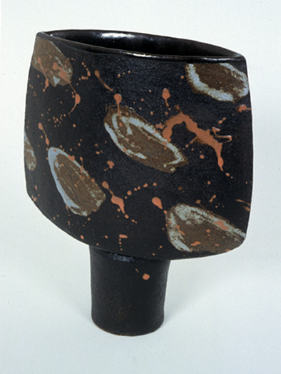The studio ceramics at Cannon Hall Museum were purchased between the 1970s and the present day as part of the museum's remit to collect and display decorative arts made from a variety of media. The collections contains pieces by Bernard and David Leach, Lucie Rie, Nicholas Vergette, Magdalene Odundo amongst many others. A significant part of the collection was originally collected by Wakefield Education Services for handling by school children and as a consequence some pieces have suffered numerous breakages and repairs. In recent years new items have been added to the collection to provide the opportunity to show different materials, such as porcelain, and local potters, such as Val Barry.