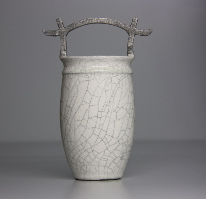 The core of the Fitzwilliam Museum’s extensive collection of ceramics consists of 3,855 pieces of English and Continental earthenware and stoneware, dating from the late medieval period to the early twentieth century, bequeathed by Dr J. W. L. Glaisher in 1928. The bulk of this collection is historic but it includes some examples of Martinware. Throughout the rest of the twentieth century, studio ceramics acquisitions were sporadic and piecemeal but included a very large cow vase by William Staite Murray, given by the collector the Very Rev. Eric Milner-White (1884–1963), and a small group of ceramics, including works by Hans Coper and Gordon Baldwin, given by the influential dealer and collector, Henry Rothschild (1913–2009). Towards the very end of the century, Sir Nicholas and Lady Goodison began to buy contemporary British crafts for the Museum, forming a collection of outstanding objects by living makers dating from the 1990s to the present day. This ever-growing collection includes ceramics by makers such as Duncan Ross, Carol McNicoll, Richard Slee, Julian Stair, Edmund de Waal, Jennifer Lee, Sara Flynn, Ashraf Hanna, Frances Priest, Elspeth Owen and Halima Cassell. Studio ceramics dating from the early and mid-twentieth century were not well-represented in the collection until the Museum received a generous bequest from Dr John Shakeshaft (d. 2015) in 2016. Over 720 pots dating from the 1930s through to the early 2000s entered the collection, including works by Bernard Leach (and other members of the Leach family), Shoji Hamada, Katharine Pleydell-Bouverie, Michael Cardew, Ray Finch, Jim Malone, Phil Rogers, Gwyn Hanssen Pigott, Robin Welch, John Maltby, Ruth Duckworth, Lucie Rie, Hans Coper and many other artists, with a particularly strong group of work by potters working in a wood-firing tradition, including Svend Bayer, Nic Collins and Lisa Hammond.