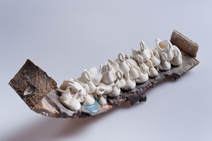 Studio ceramics is not an area that the University of Dundee specifically aims to collect in, but as part of the collection of Duncan of Jordanstone College of Art & Design (one of the UK’s leading art schools) the collection holds several pieces by staff, visiting tutors, students and notable graduates. These include Stephen Brown, Jeff Oestreich, Ruthanne Tudball, Tim Proud, Jane Woodford, Harriet Rowan, Charlotte Cadzow, Chiara Braidotti, Stephen Winstanley (Toroid), Lada Wilson and Isla Keiller. As well as the DJCAD pieces, there are a small number of ceramic works in other parts of the collection, including pieces by Edinburgh-based ceramicist Fiona Thompson created following a residency in our D’Arcy Thompson Zoology Museum.